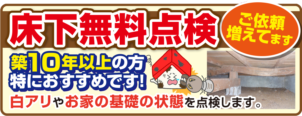 ご依頼増えてます!特に築10年以上の方に特におすすめ!白アリやおうちの基礎の状態を点検します。